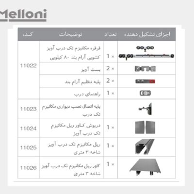 مکانیزم تک درب آویز کشویی آرامبند 80 کیلویی hang ceiling ملونی