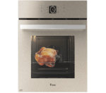 - این محصول شیشه ای دارای ابعاد 59.5*59.5*58.5 سانتی متر و ابعاد برش 570*580*575 میلیمتر با حجم فر 78 لیتر می باشد. محصول اولین دارنده برنامه های پخت به زبان فارسی دارای 15 برنامه پخت خودکار از طریق راهنمای پخت و 13 برنامه پخت ترکیبی و نیمه اتومات و تاخیری و همچنین دارای فن کانوکشن ( دمای یکنواخت ) و 2 عدد سینی لعابی است. همچنین مجهز به ساعت دیجیتال ( زمان حقیقی ) بدون تاثیرپذیری از قطع برق تا ۴۸ ساعت و یک عدد موتور جوجه گردان و ریل تلسکوپی آلمانی ( هتچ آلمان ) می باشد. محصول مجهز به سیستم افزایش سریع دمای داخل فر شیشه سکوریت مقاوم به حرارت بوده و نوع سیستم گرمایشی پایین و پشت فر برق و نوع سیستم گرمایشی فوقانی برق (شامل المنت دور و گریل ) است. این محصول دارای درب شیشه ای سه جداره و ترموسوئیچ فن هواکش و ترموستات جهت تنظیم دمای المنت برقی و دارای ترموسوئیچ ایمنی خودکار است. جنس دستگیره آلومنیومی بوده و محصول دارای پوشش لعابی پشت Self clean و پوشش دیواره های لعابی Easy to clean و 2 عدد لامپ ( بالا و پایین) است. این محصول دارای سنسور پخت گوشت Meat prob ( اطمینان از مغز پخت شدن) و سیستم درب آسان بازشو و قفل کودک صفحه لمسی می باشد. دفترچه راهنما و دستورالعمل محصول و 4 عدد پیچ نصب و برگه گارانتی به همراه محصول می باشد.
