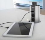 پریز برق پاپ آپ با دکمه تاچ مکانیکی رنگ مشکی (2 سوکت برق یونیورسال و 1 پورت USB و 1 پورت اینترنت و 1 پورت تلفن و 1 پورت HDMI و 1 پورت صدا و 1 پورت VGA) فانتونی کد N337