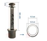 - پریز توکار استیل به رنگ نقره ای دارای 3 سوکت برق و 2 پورت شارژر USB و محافظ نوسان برق برای عمق 379 میلیمتر و دارای قطر 100 میلیمتر می باشد.