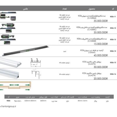 مکانیزم درب ریلی این لاین خطی برقی 190 فانتونی کد K062