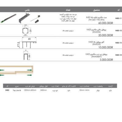 - دارای 1 شاخه پروفیل پایین (متناسب با سایز مکانیزم)