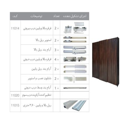 مکانیزم تاپ لاین روکار 3 درب با آرام بند وسط ملونی کد 11014_11020_11015
