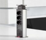 پریز برق پاپ آپ با دکمه تاچ مکانیکی رنگ مشکی (2 سوکت برق یونیورسال و 1 پورت USB و 1 پورت اینترنت و 1 پورت تلفن و 1 پورت HDMI و 1 پورت صدا و 1 پورت VGA) فانتونی کد N337