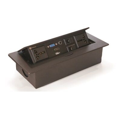 پریز برق پاپ آپ با دکمه تاچ مکانیکی رنگ مشکی (2 سوکت برق یونیورسال و 1 پورت USB و 1 پورت اینترنت و 1 پورت تلفن و 1 پورت HDMI و 1 پورت صدا و 1 پورت VGA) فانتونی کد N337